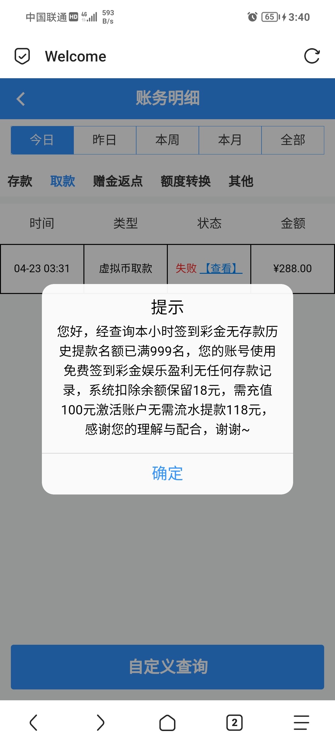 接上回100一拉,这个月发工资了,冲了3800,打了4万流水,提款5000,拒绝出款,要求罚10倍水,90一拉,直接死光,避雷990金沙