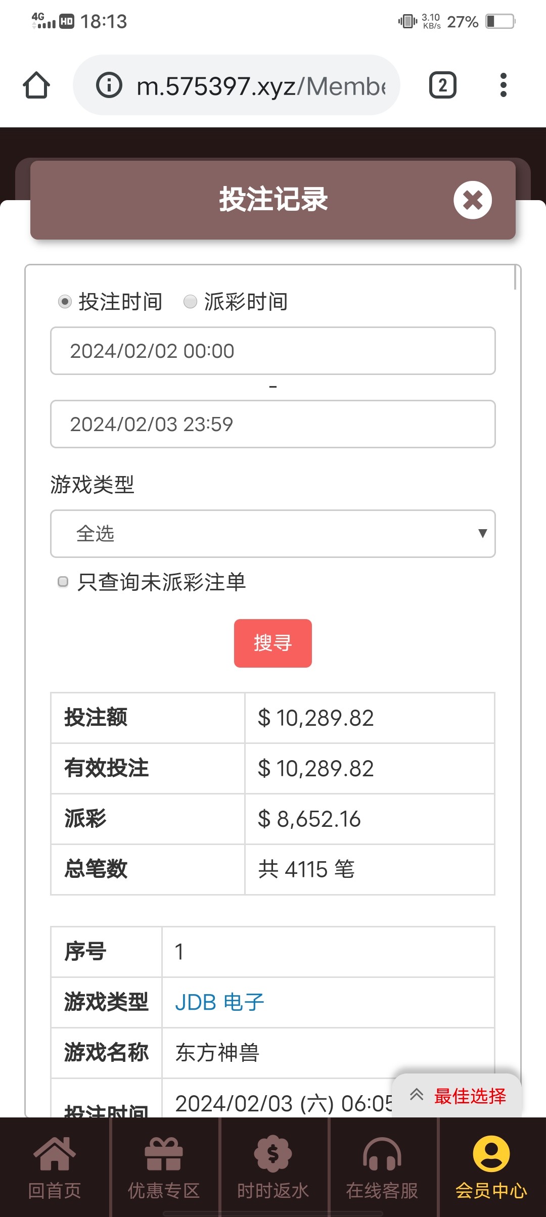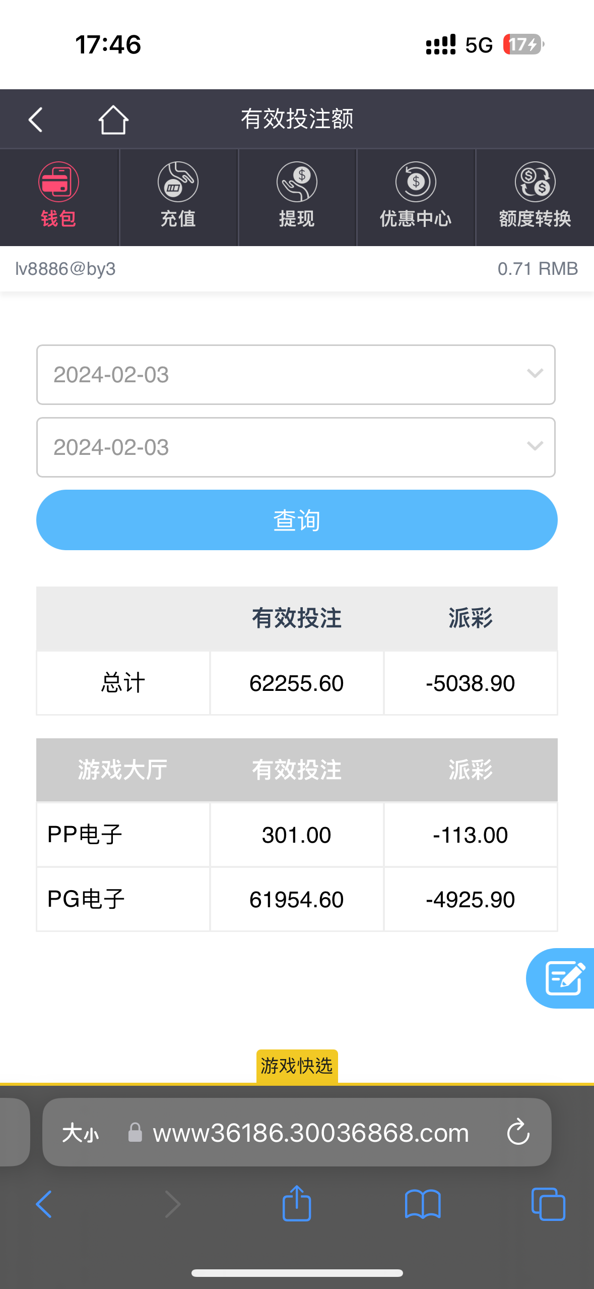 今天送了400进去 几百万流水 也不知道有没有888 账上还有40W