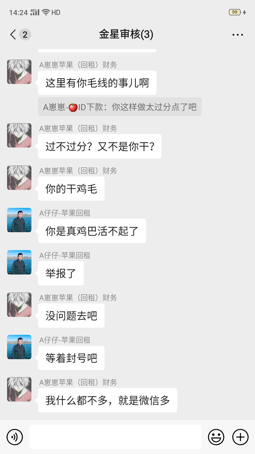 路人我操你妈 废物狗东西 项目不让发 自己天天拿小号发帖 骗下级给你打流水 操你死妈  赶紧报警抓了他