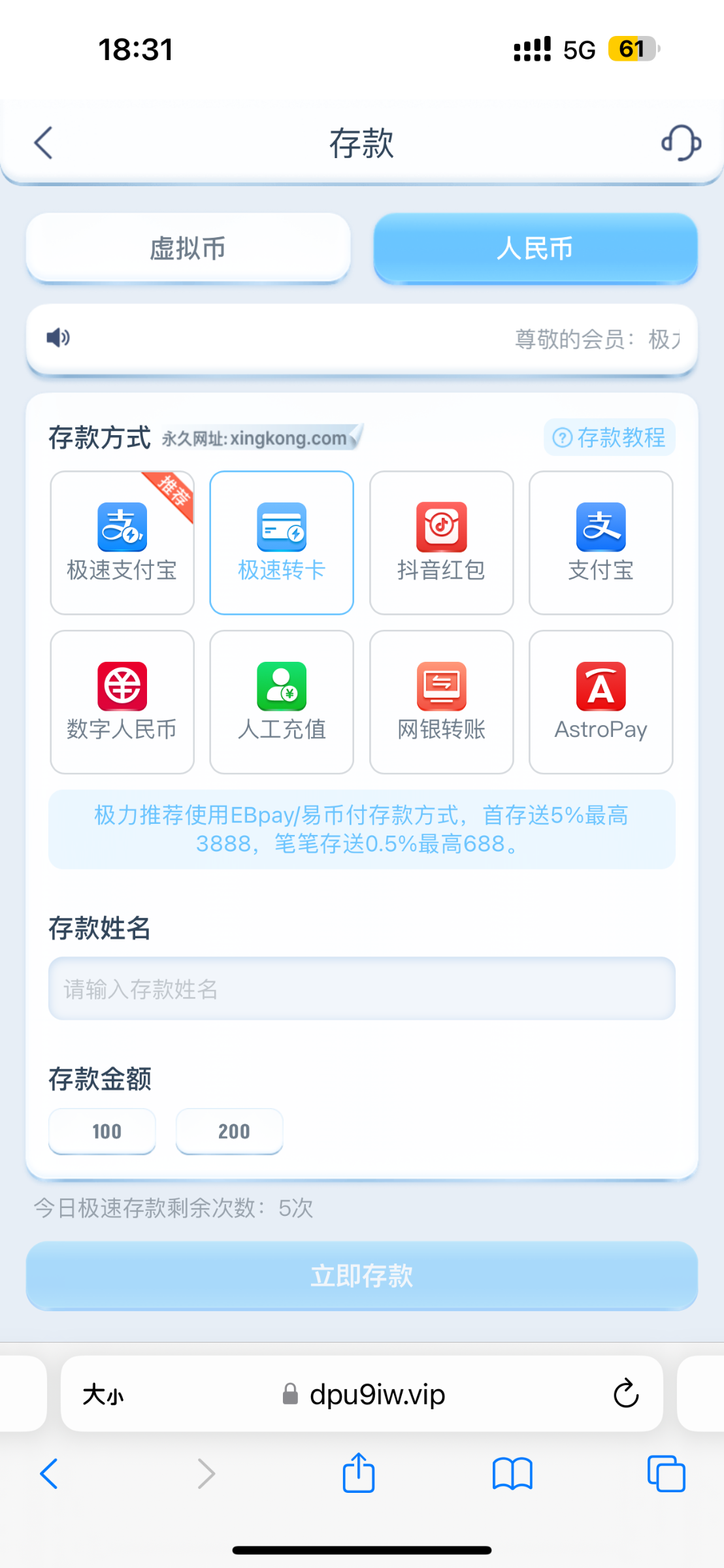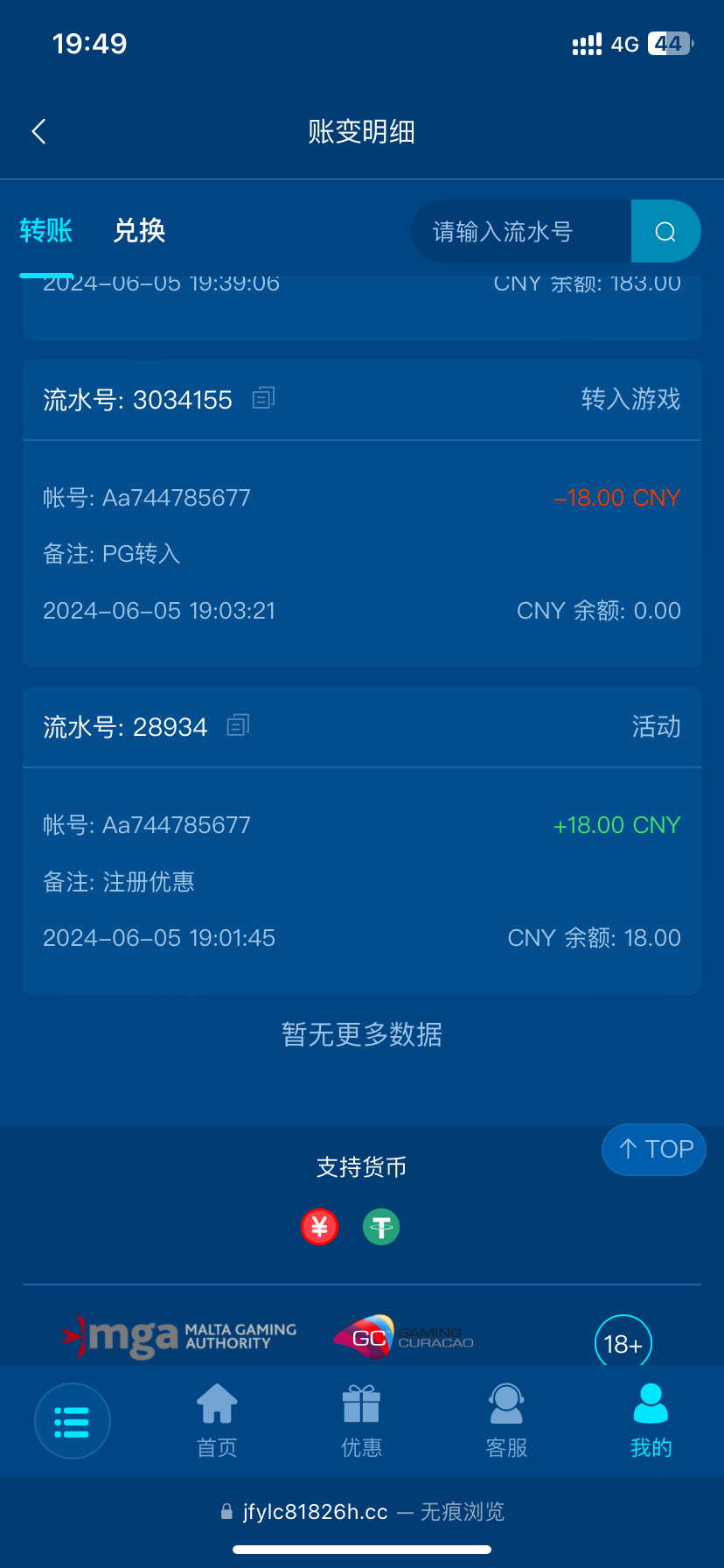 没有 还有注册送18体验金
