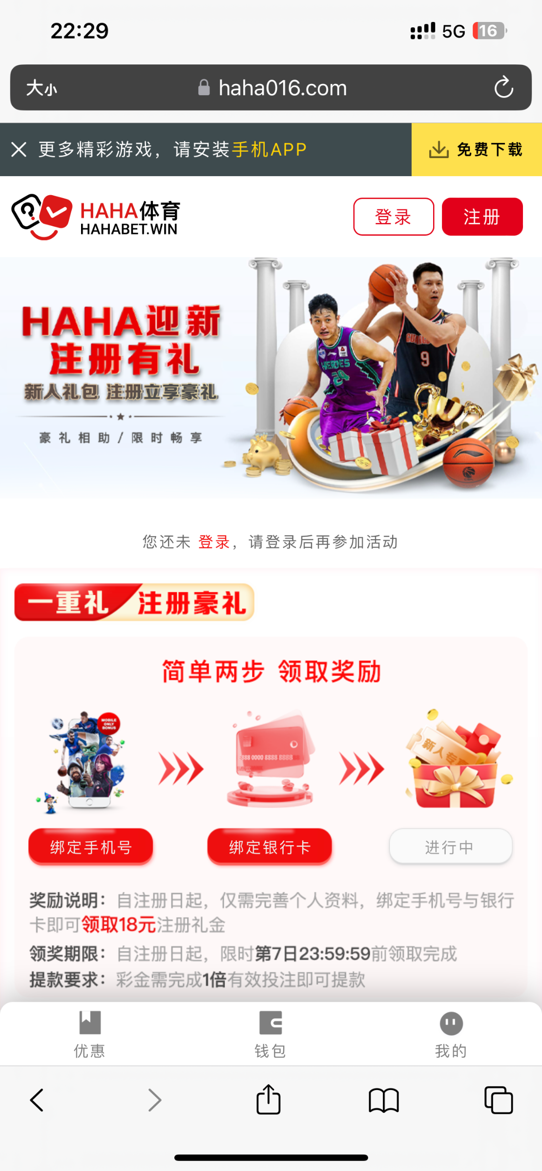 注册绑定手机号和银行卡,优惠里新手任务自助领取18元彩金,最低100提现,具体游戏限制自行询问客服