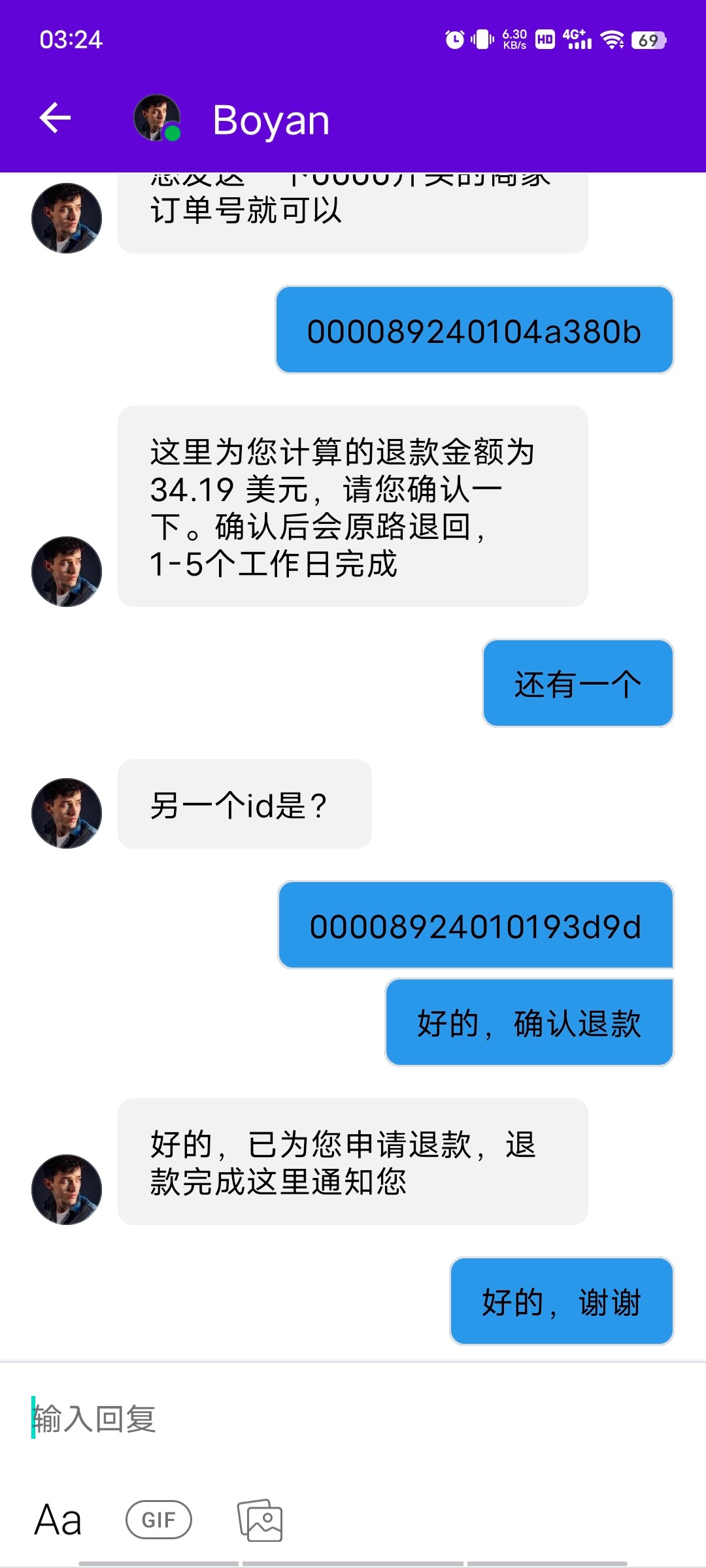 谢了,兄弟退回34.19美元  折合人民币是247