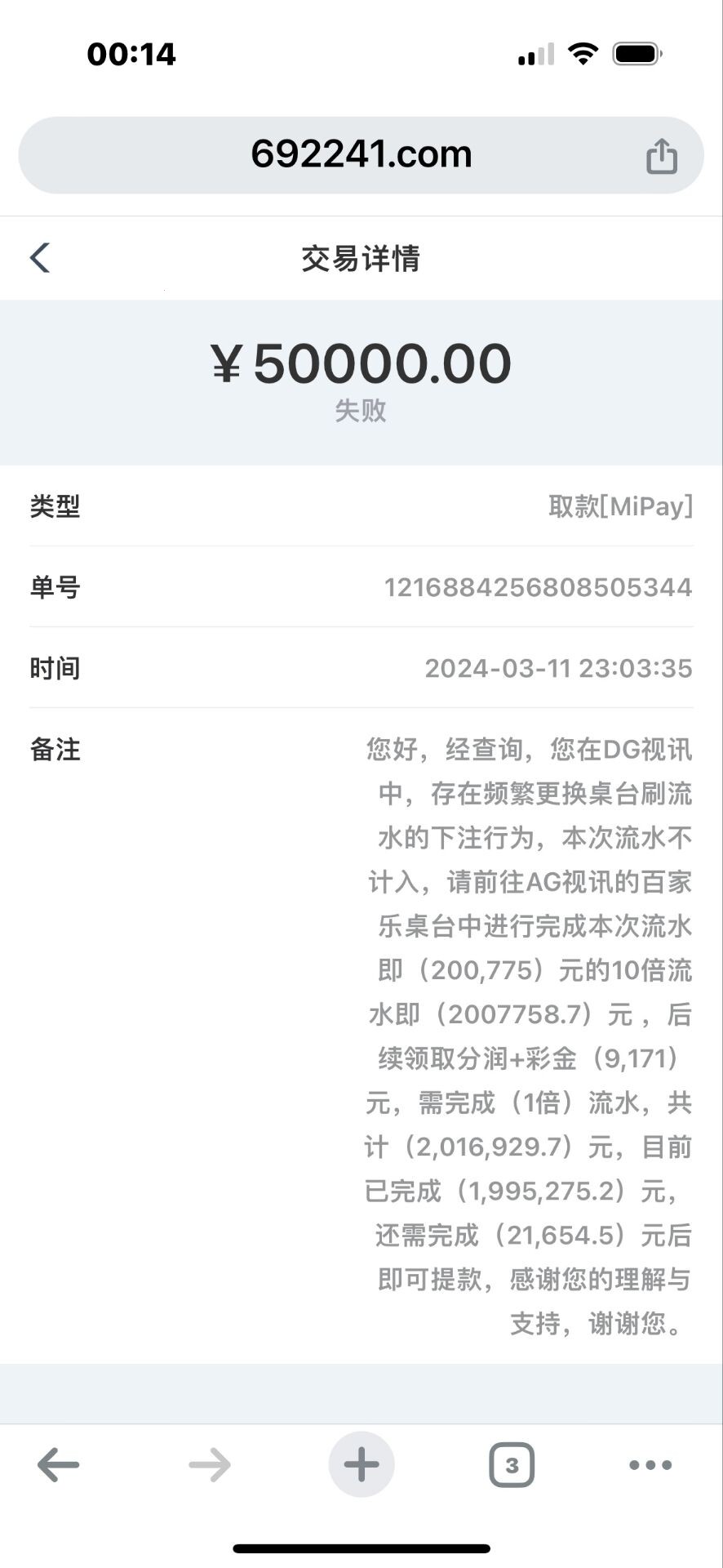 有玩过这台子的老哥小心了,最近经常黑人,都是大几万,几十万的,这台子不行了,虽然说我以前提过三十几万,提过几次,现在变黑了,估计准备跑路了,基本每天都见有人被黑,这台子,经常用的联系方式叫咖聊,只要你在群里发提款不了的截图,分分钟提出群,然后撤回人家说过的话和提款不了的图