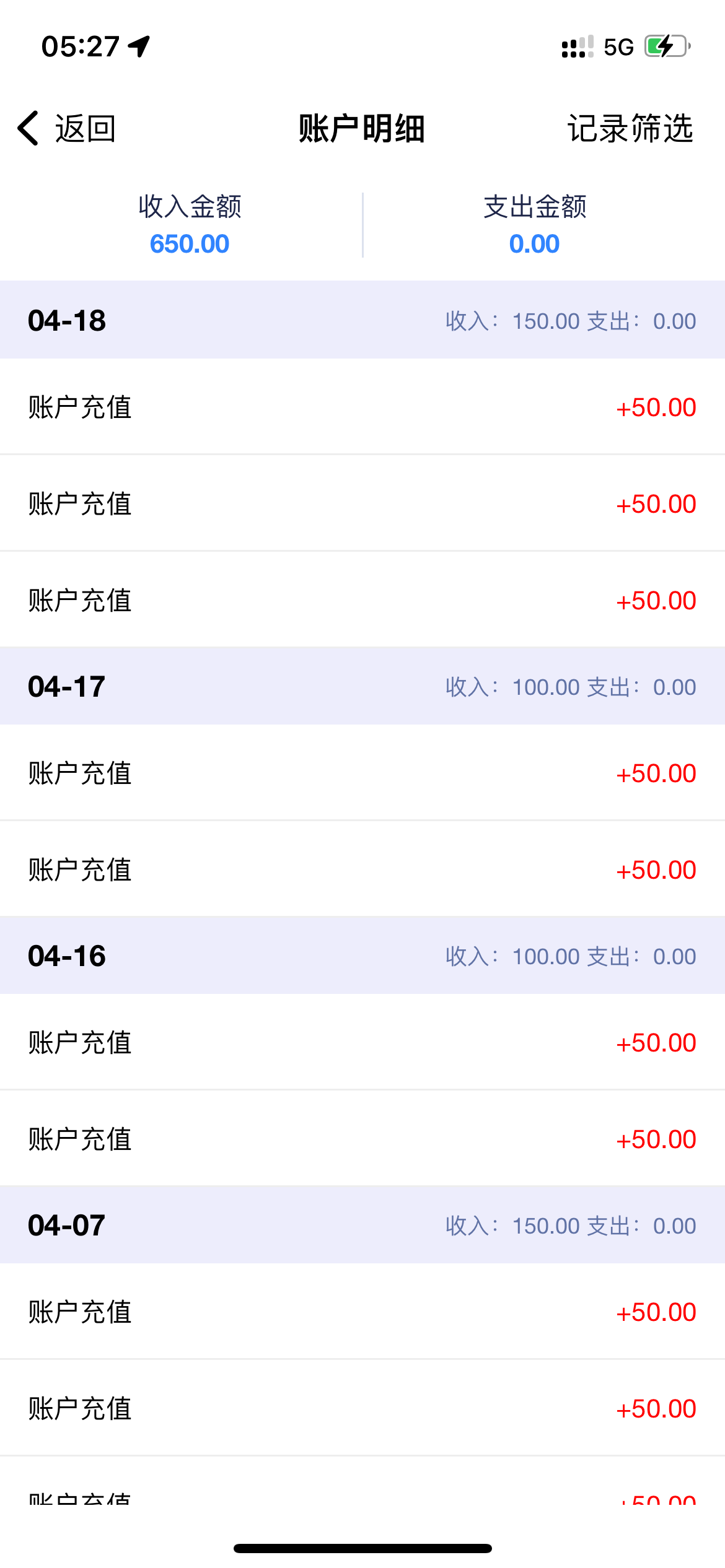总共充不少了这个月还没开工资呢5号开