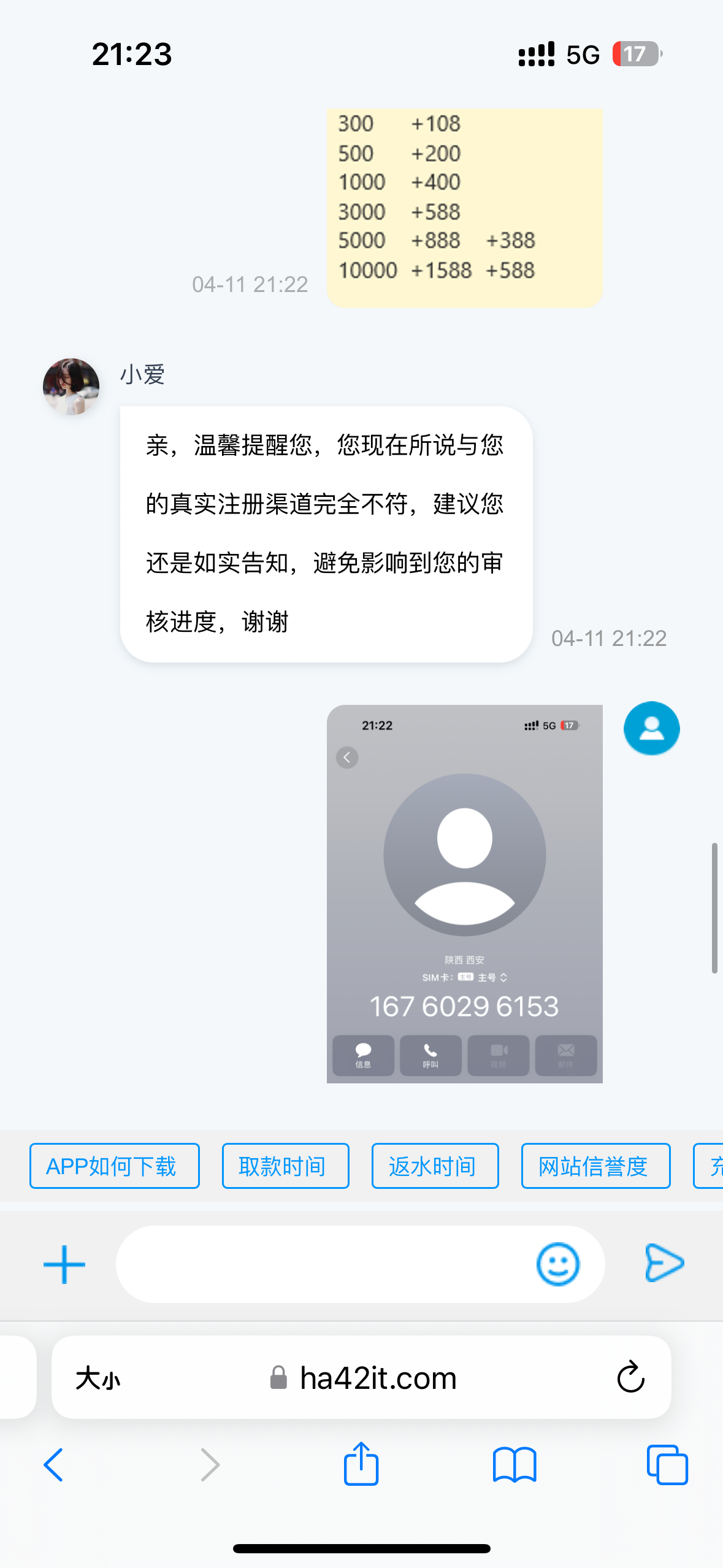 说之前从色情网站,或者说是手机短信进去的,过年在其他平台赢了几万块钱换了个苹果手机,之前的破手机丢在老家了。然后后台聊天和支付宝一起截图发给她,支付宝余额p个几万块钱不是可以吗