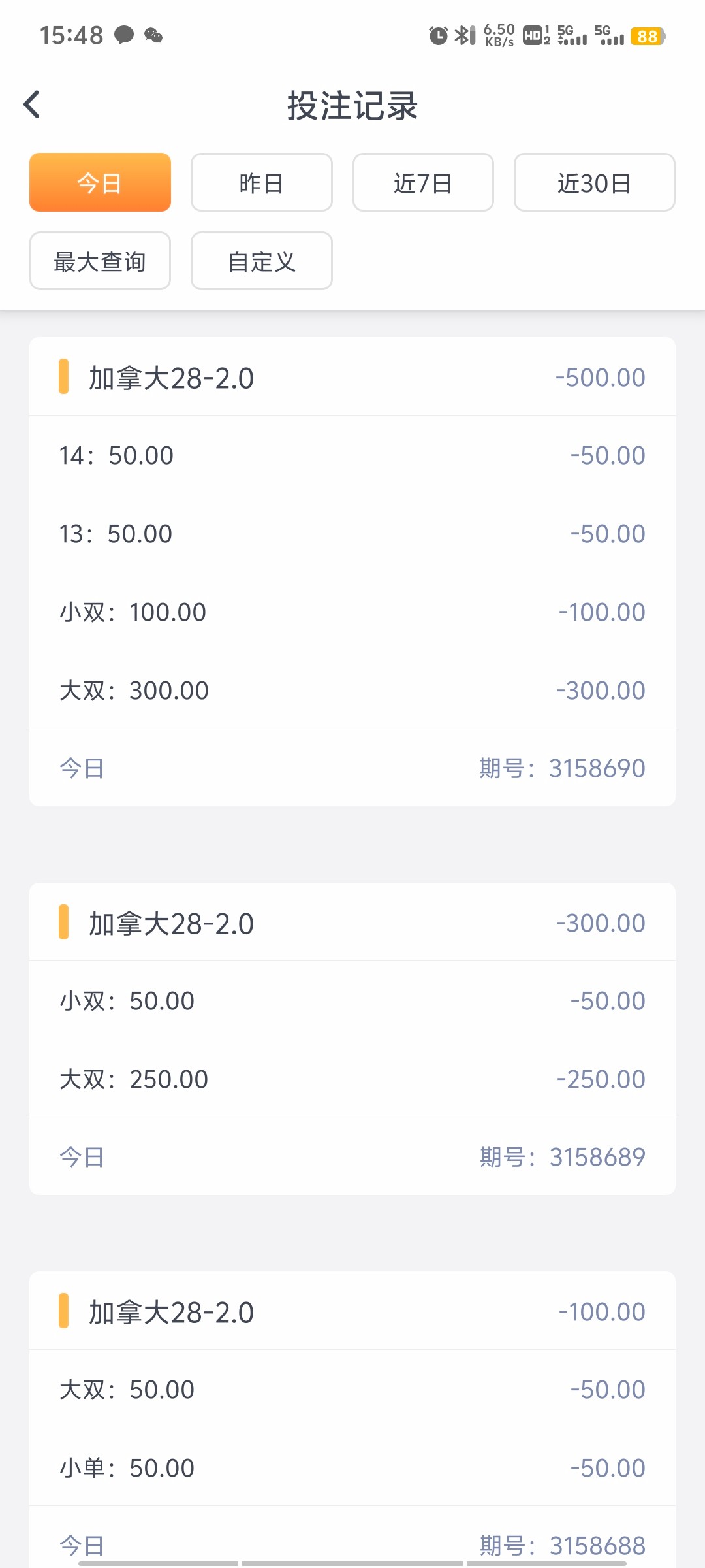 ID452263,昨天打了7500多流水,今天打了6000多,加起来一共13,000多流水,输了3000,来个大一点的包吧路人