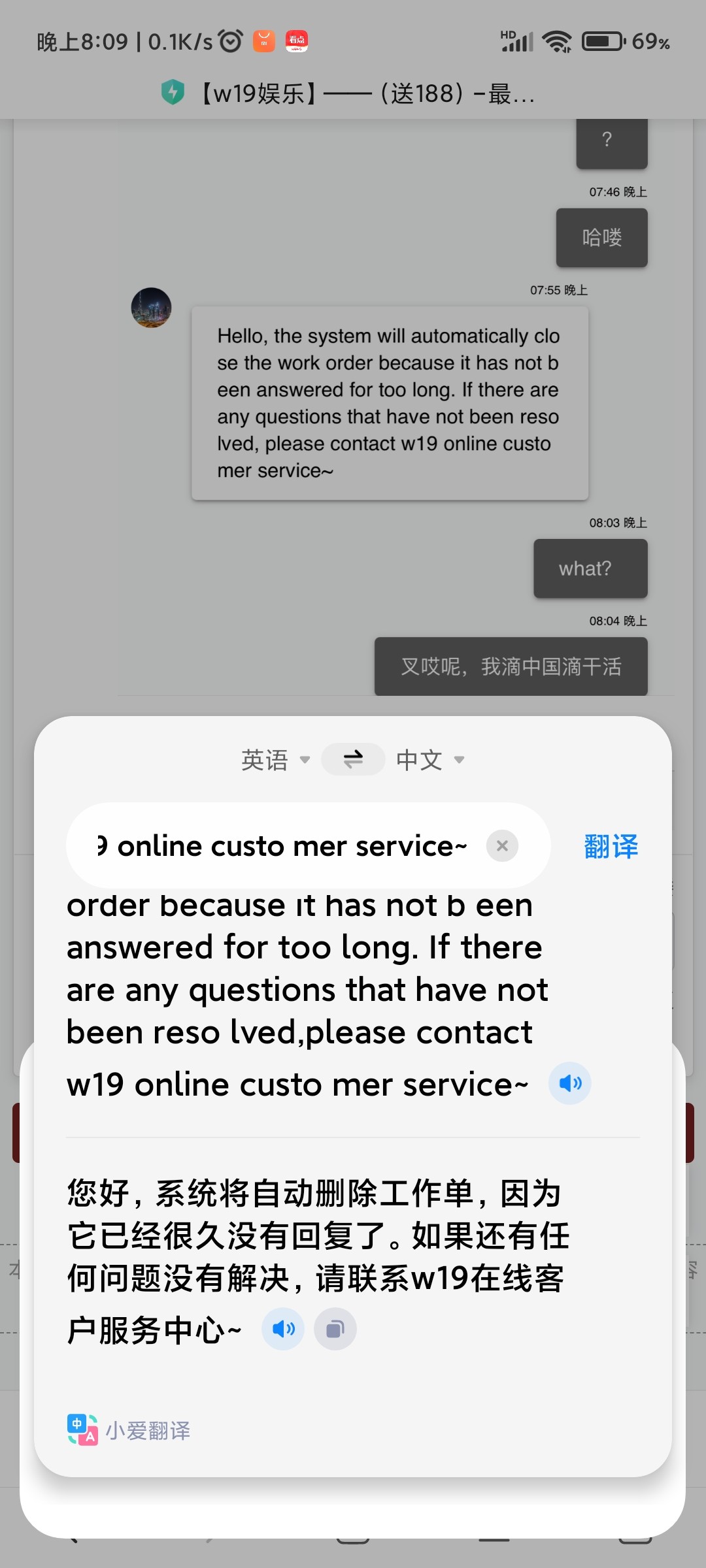 您好,系统将自动删除工作单,因为它已经很久没有回复了。如果还有任何问题没有解决,请联系w19在线客户服务中心~