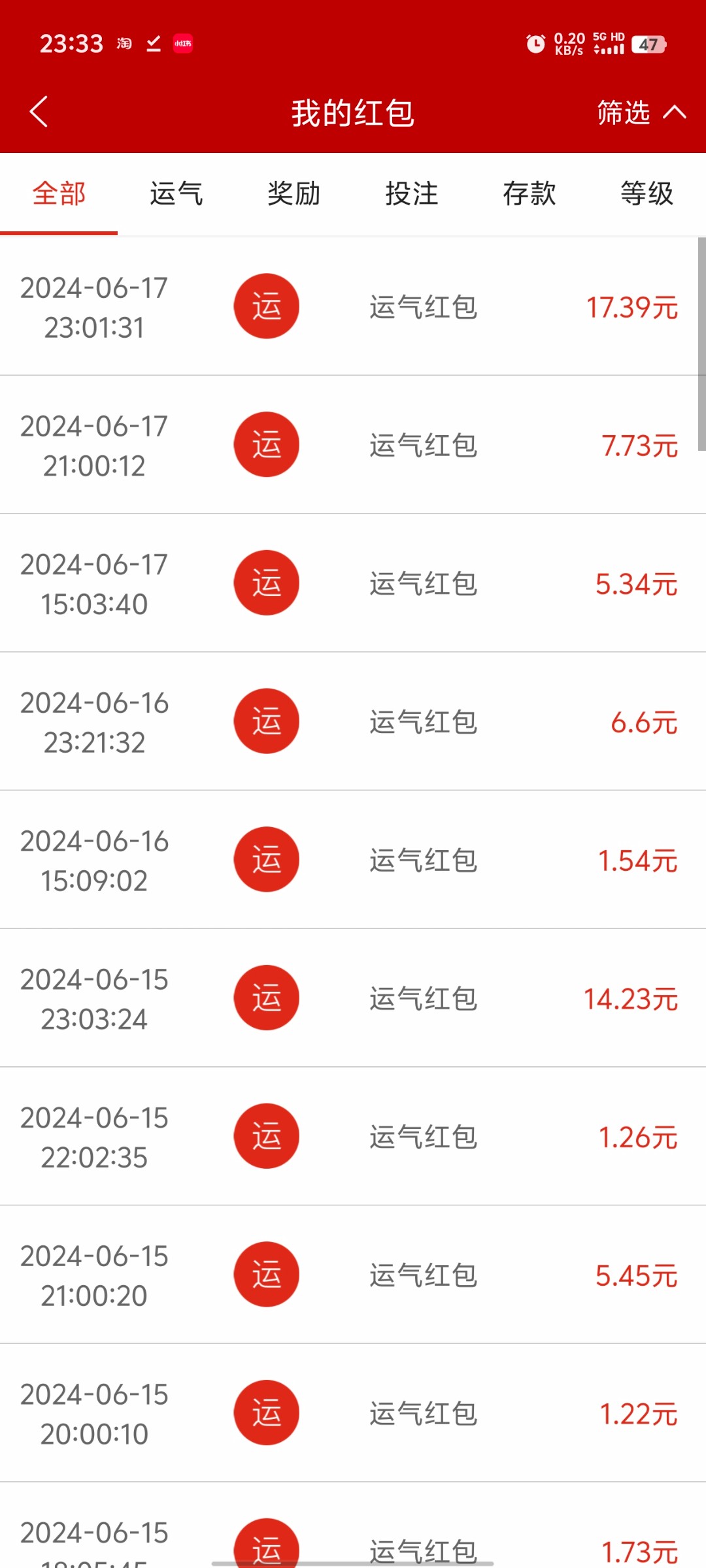 关于773这一个多月红包七七八八一千多了 运气好每天几十块低保 号只有一万多流水