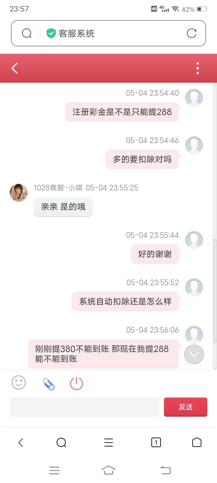 我问了客服要把钱搞输到288才能提