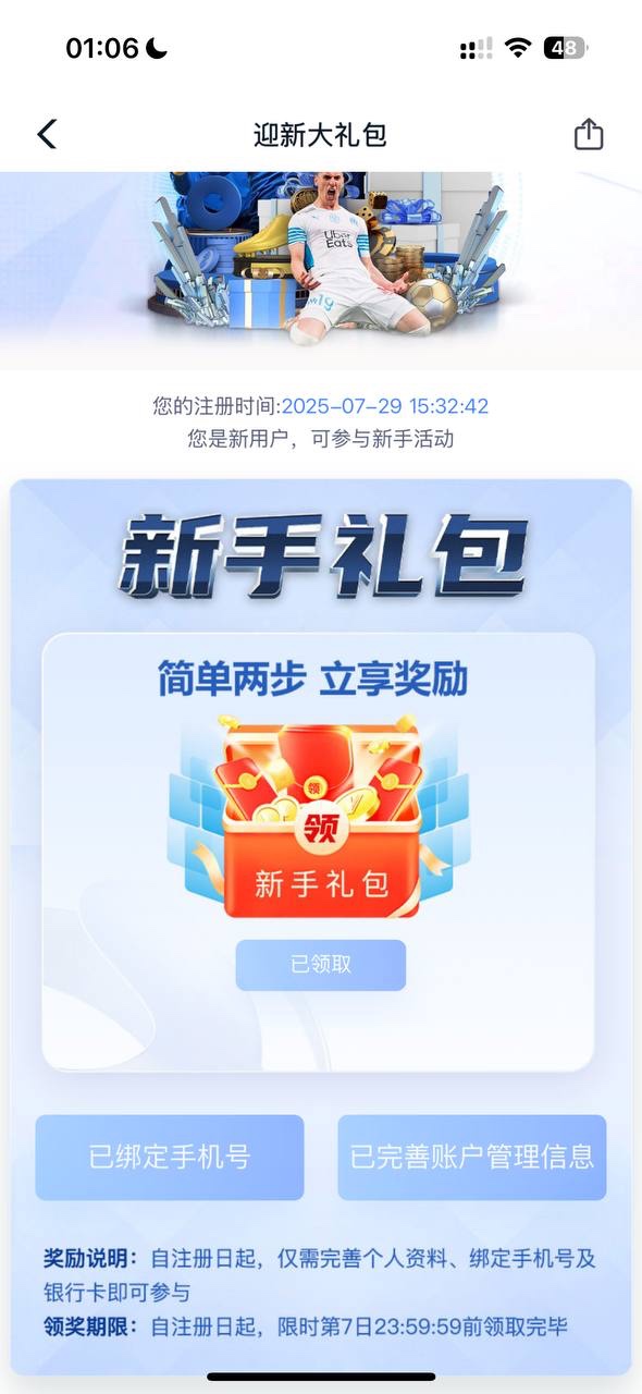 注册在活动绑定手机机号和银行卡领取