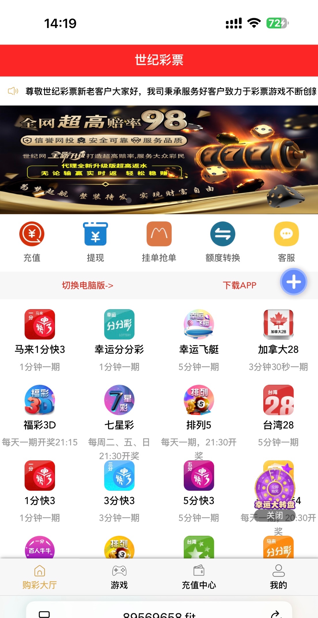 打电话来的,电话客服说有号可以找客服申请,你们自测,5237.com
