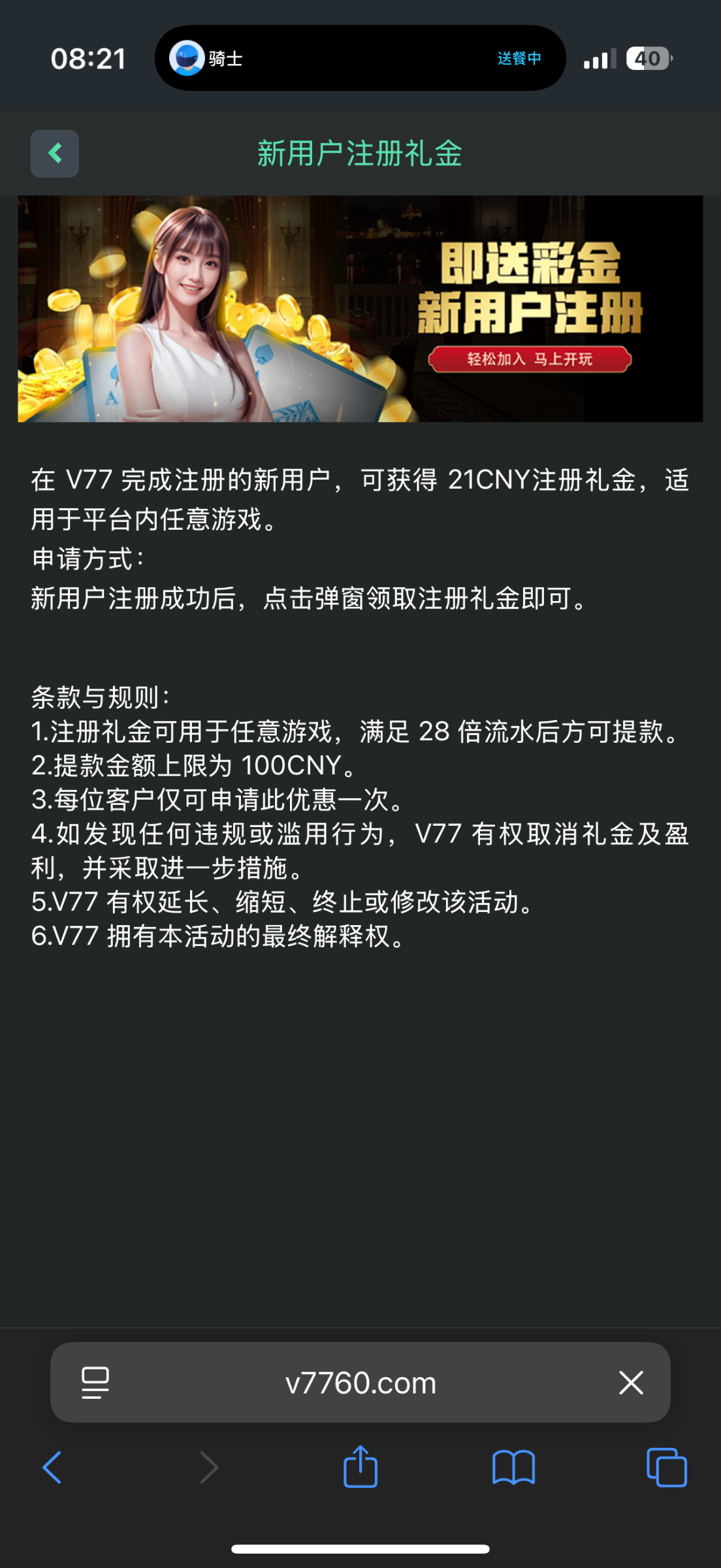 注册21彩金