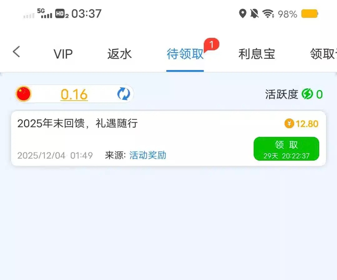 262.com 上号看见能领12块8彩金,但是要最近三天有充值≥50元以上的可以去看看,我262没赢过,不会充了(严禁充值!)