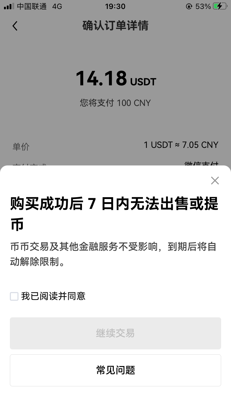 我注册没用过,本来说买点币的付款直接弹出窗口说买了7天之内不能交易和提币,C2C买也是提示7天
