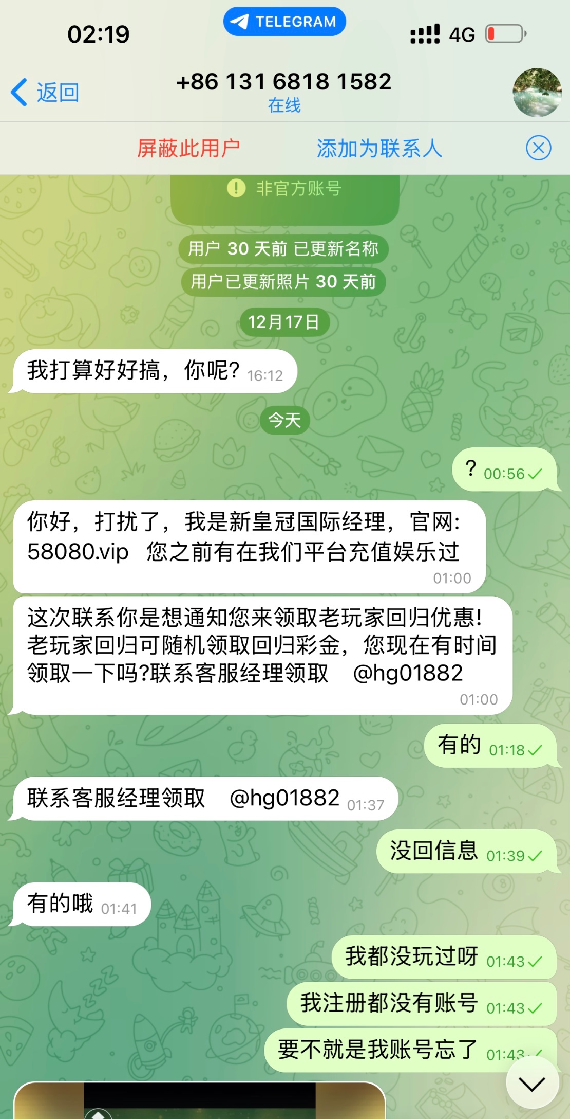 链接58080.vip直接上飞机在这个客服@hg01882 老哥们可以用自己小号发信息我是没有玩过这个平台