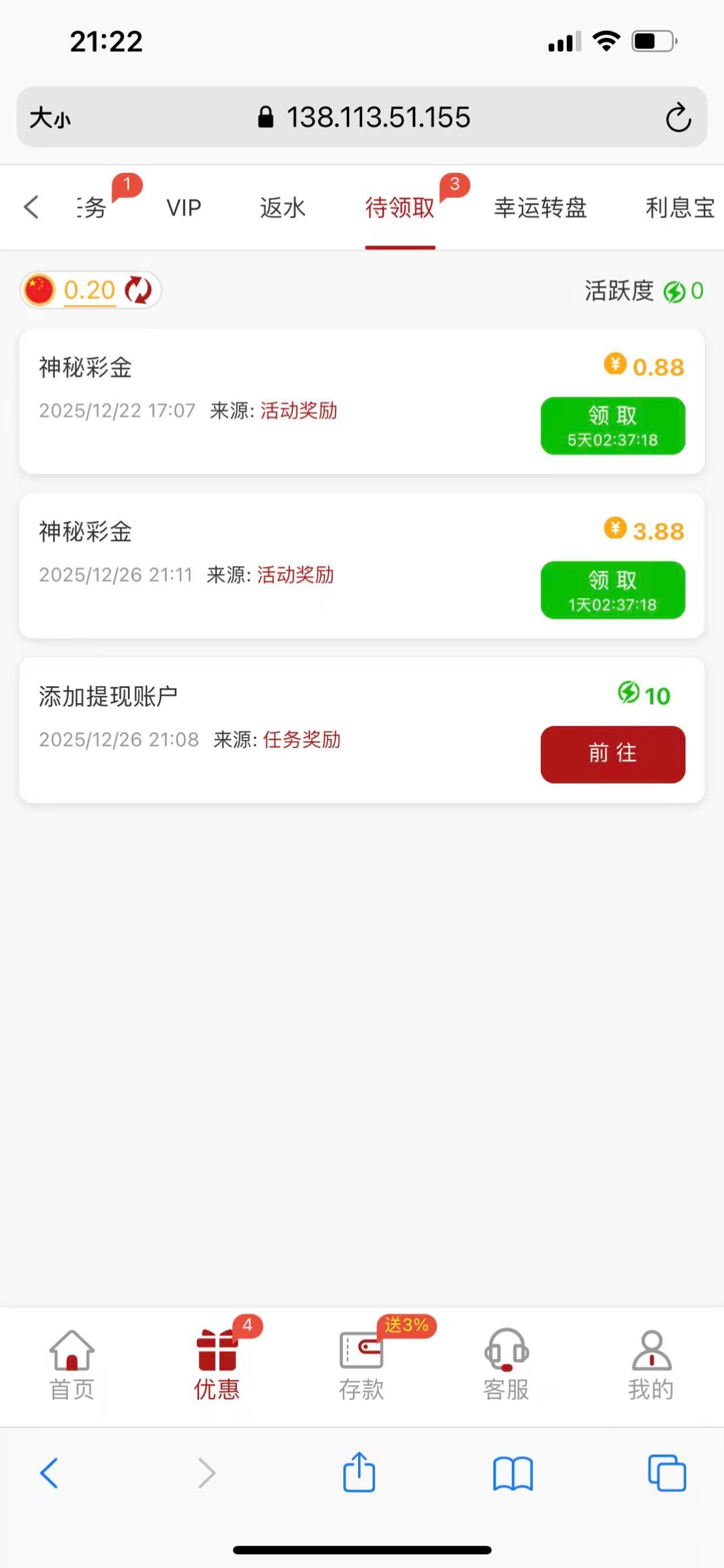 这个没有充值过之前也送过彩金,今天接到电话让我领取神秘彩金,31.ee