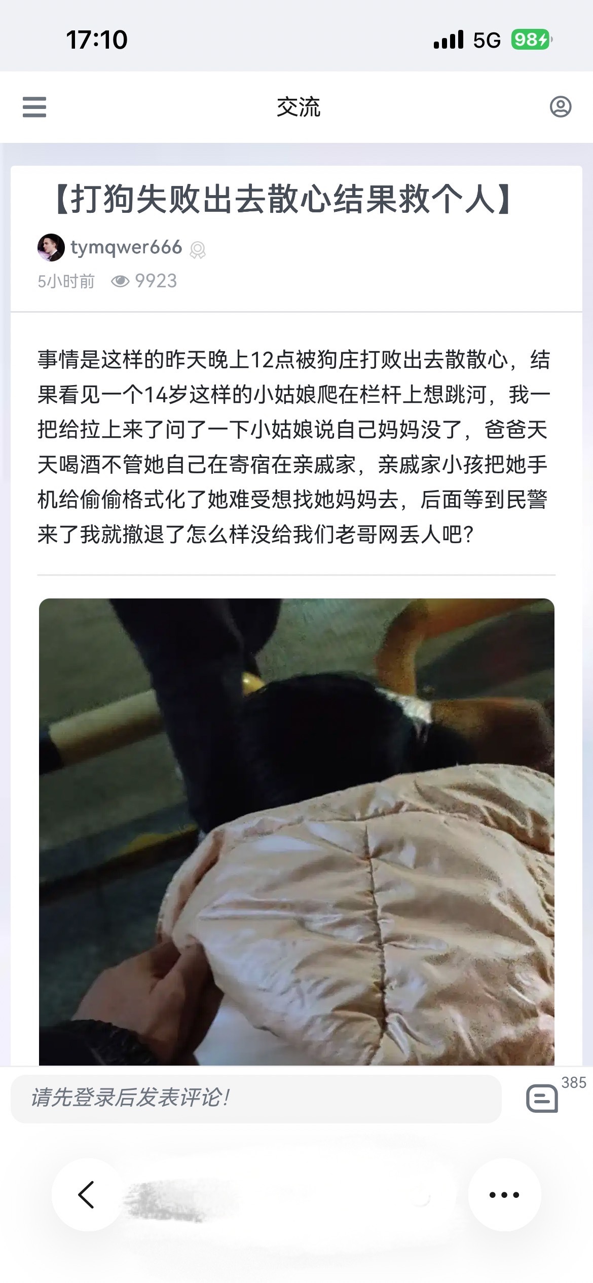 【打狗失败出去散心结果救个人】 交流