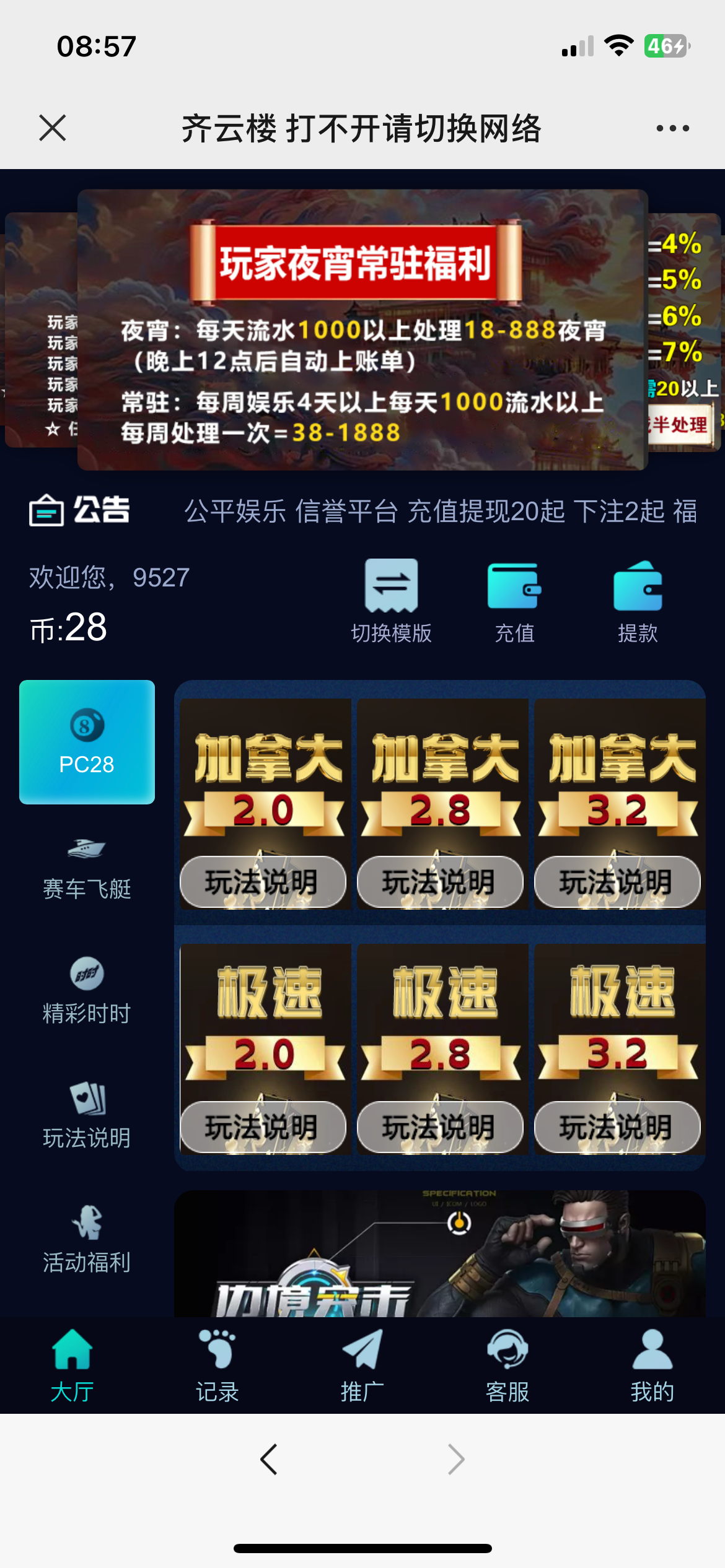 充值——体验金——28,打到288下28