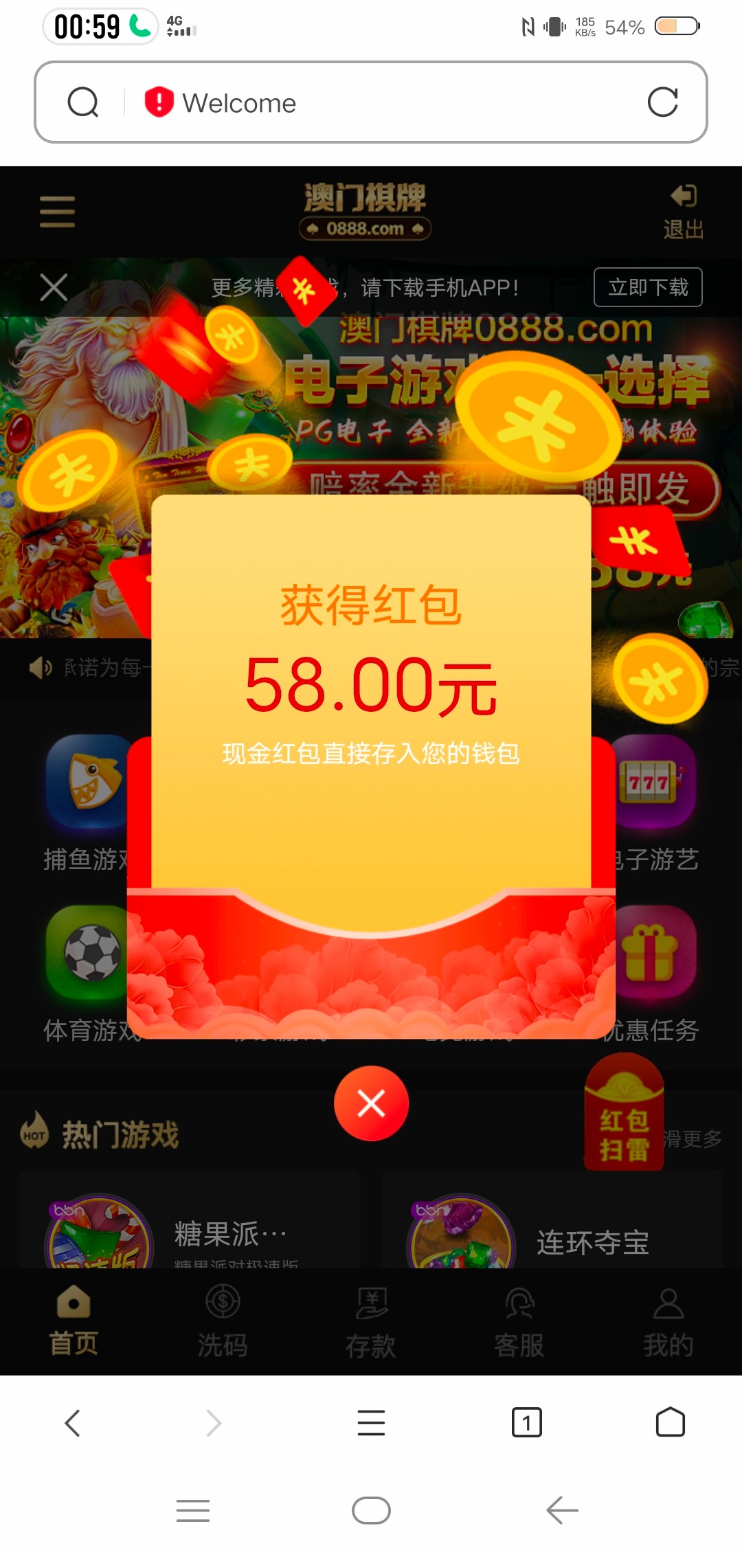 打电话过来了,很早就注册了,送了58,下了600,pg一直炸,玩什么炸什么,后来膨胀了,10块钱一次就转没了,不然可以下1000,提款基本上可以说是秒到